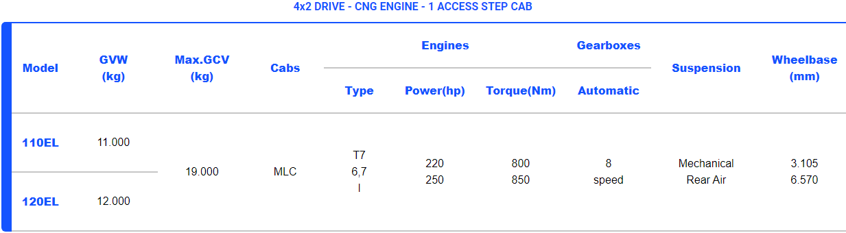 Besides the proven Tector 5 (4,5 litre) and Tector 7 (6,7 litre) diesel engines. The new 6.7 litre CNG engine uses the most environmentally-friendly fuel commercially available. The vehicle’s features are identical to the diesel versions.