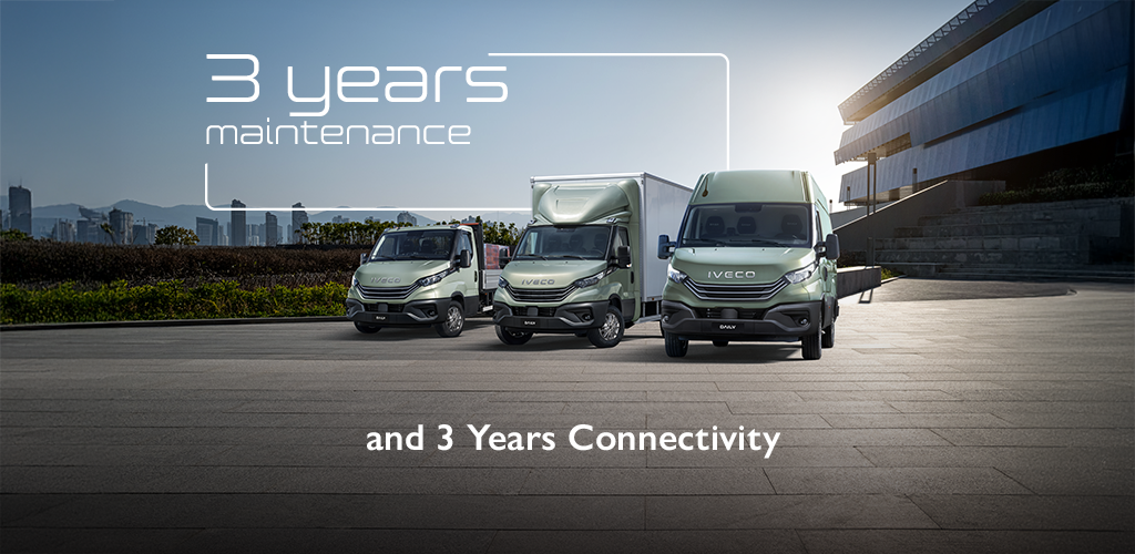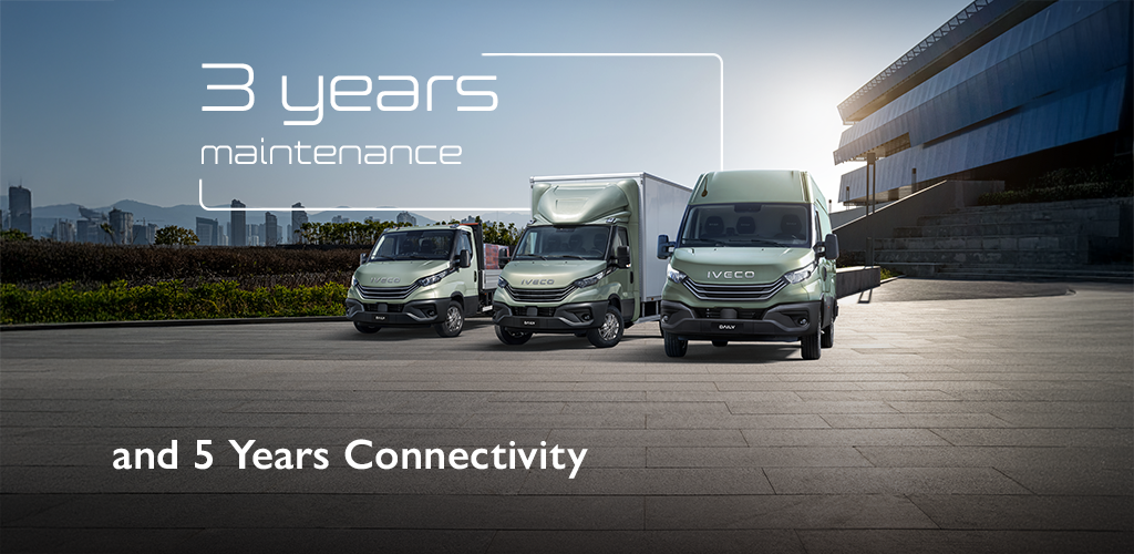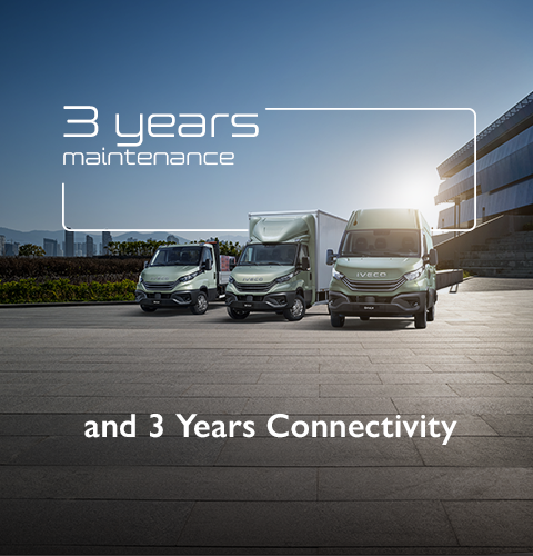 Get behind the wheel of IVECO DAILY with a 3-year maintenance and repair contract*, designed to support your business with maximum efficiency, reliability, and profitability!