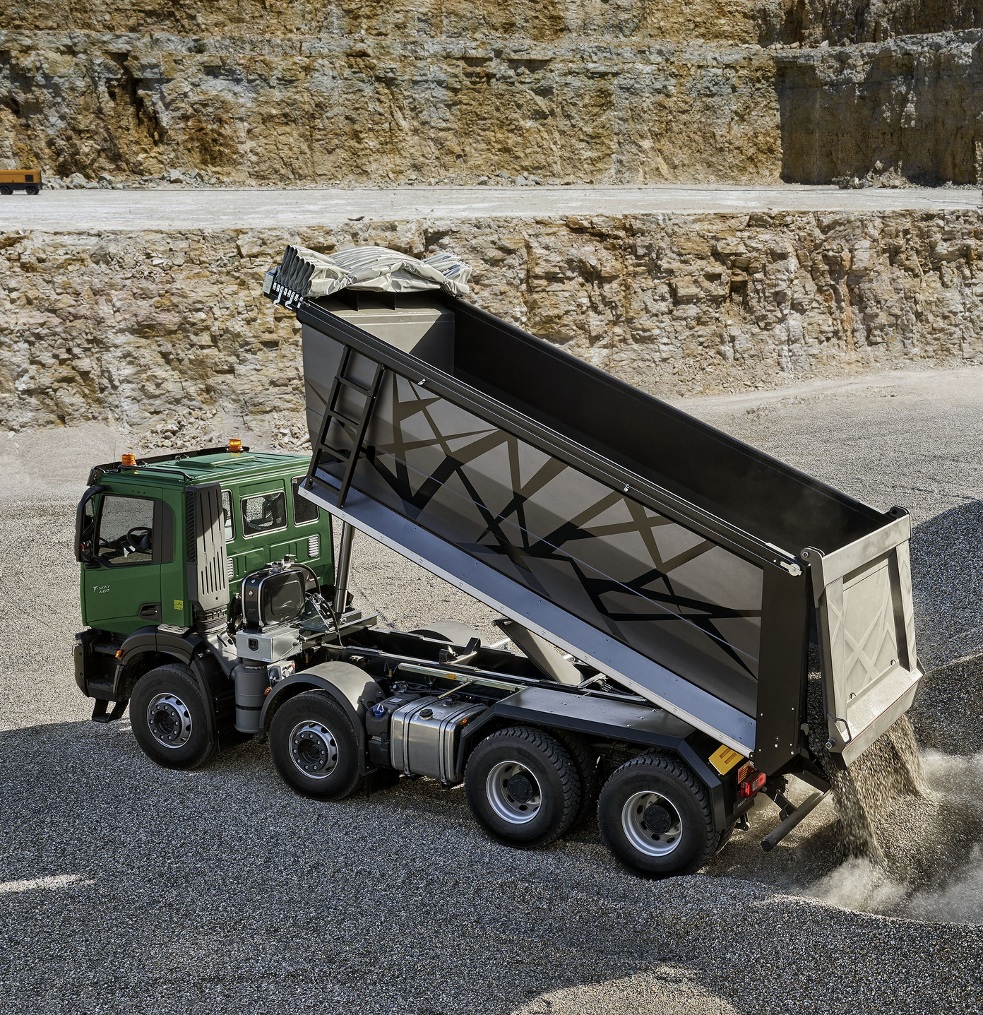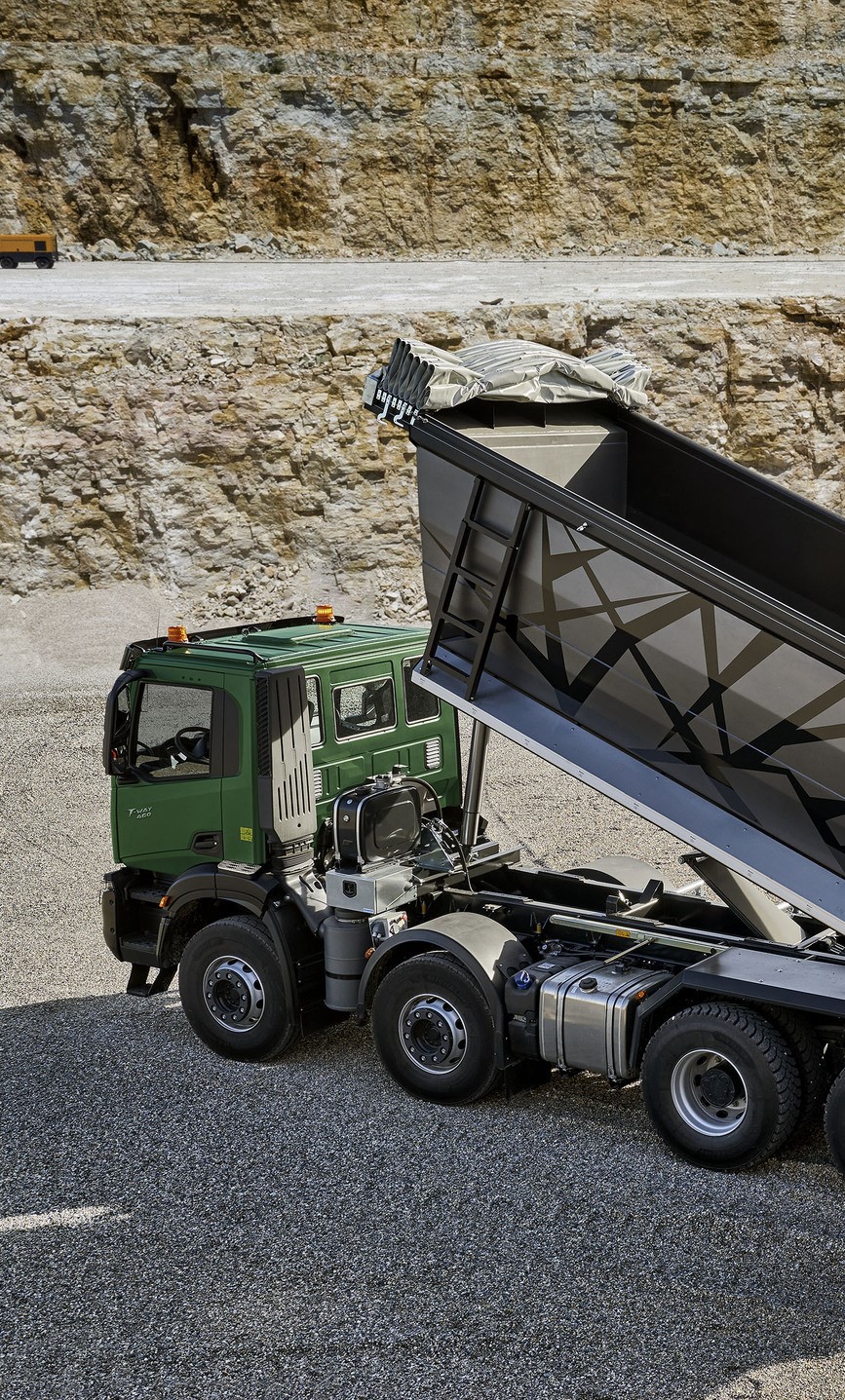 IVECO T-Way je zaradi robustnega okvirja in optimizacije teže zasnovan tako, da ga je mogoče opremiti z visokozmogljivimi prekucniki za prevoz velikega tovora.