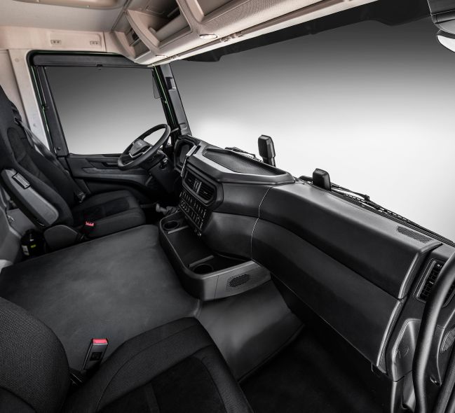 Zasnova kabine je osredotočena na funkcije, ki vozniku olajšajo opravljanje vsakodnevnih dejavnosti, z opremo, ki izboljšuje vidljivost, ščiti pred umazanijo in še veliko več.