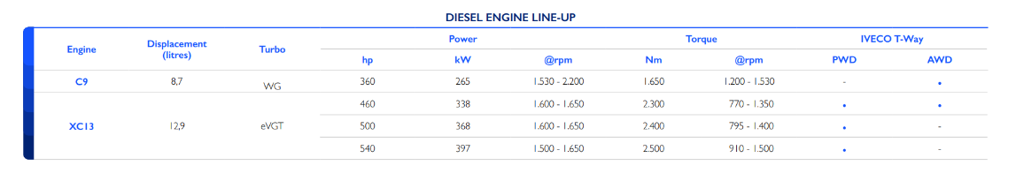 V ponudbi lahko izbirate med motorji z dvema prostorninama (9 in 13 litrov), ki zagotavljajo idealno moč in navor, ki sta najprimernejša za vašo nalogo.