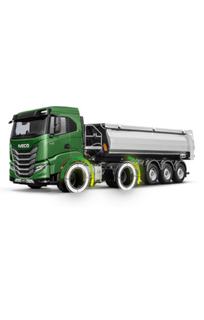 IVECO X-Way ponuja največjo prilagodljivost z možnostjo izbire zadnje osi z enojnim reduktorjem in reduktorjem pesta, zračnim in mehanskim vzmetenjem ter kolutnimi zavorami spredaj in zadaj. zadnje 18x osi so na voljo za BMV do 60 ton.